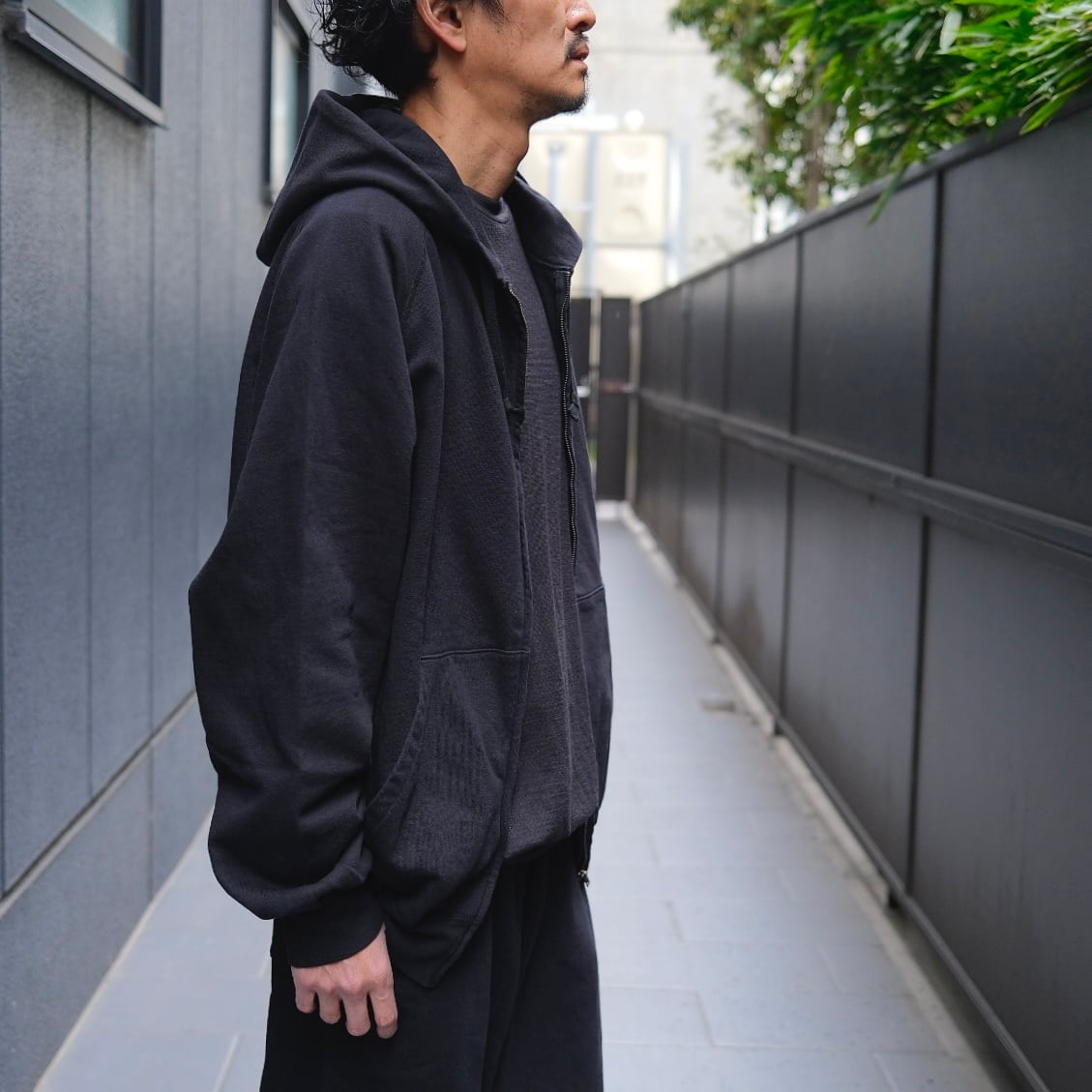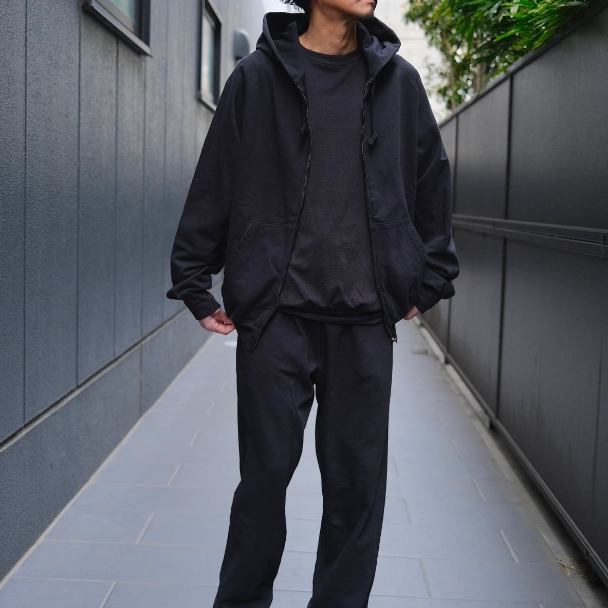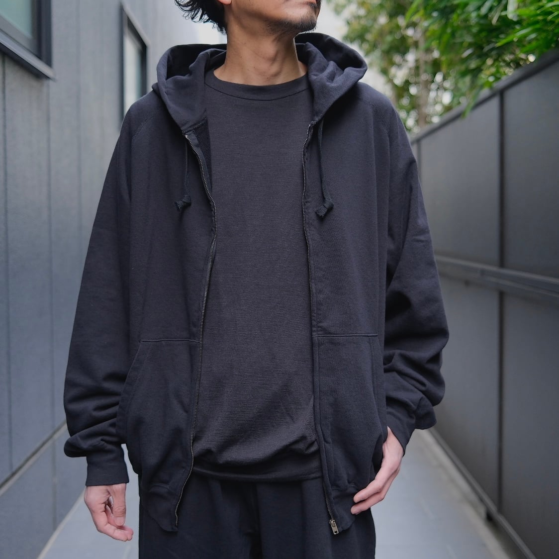 COMOLI(コモリ) / LWコットン裏毛ジップパーカー -BLACK-(D01-05016)