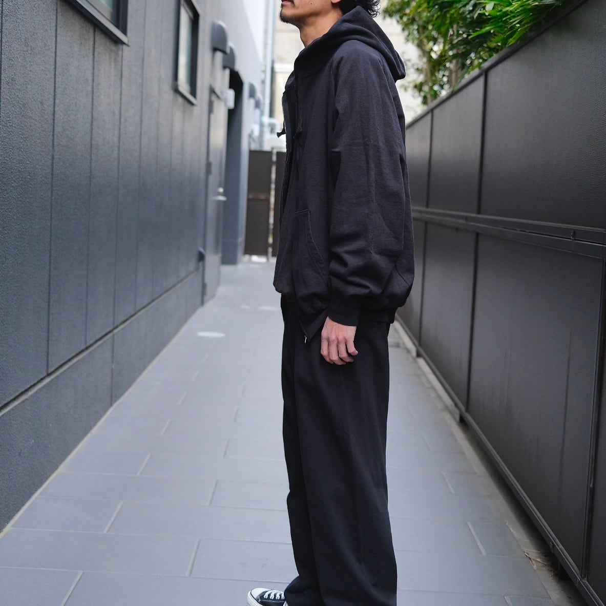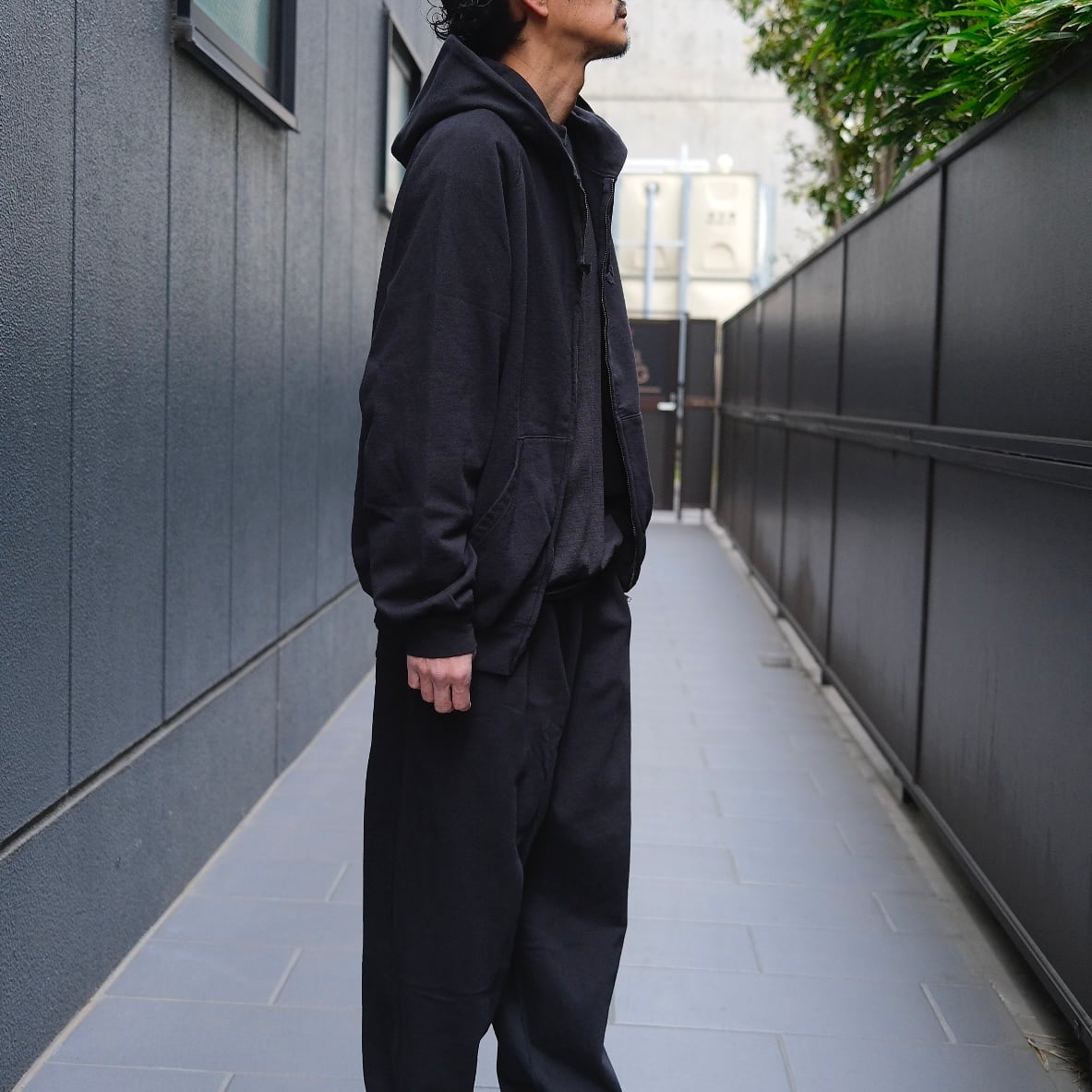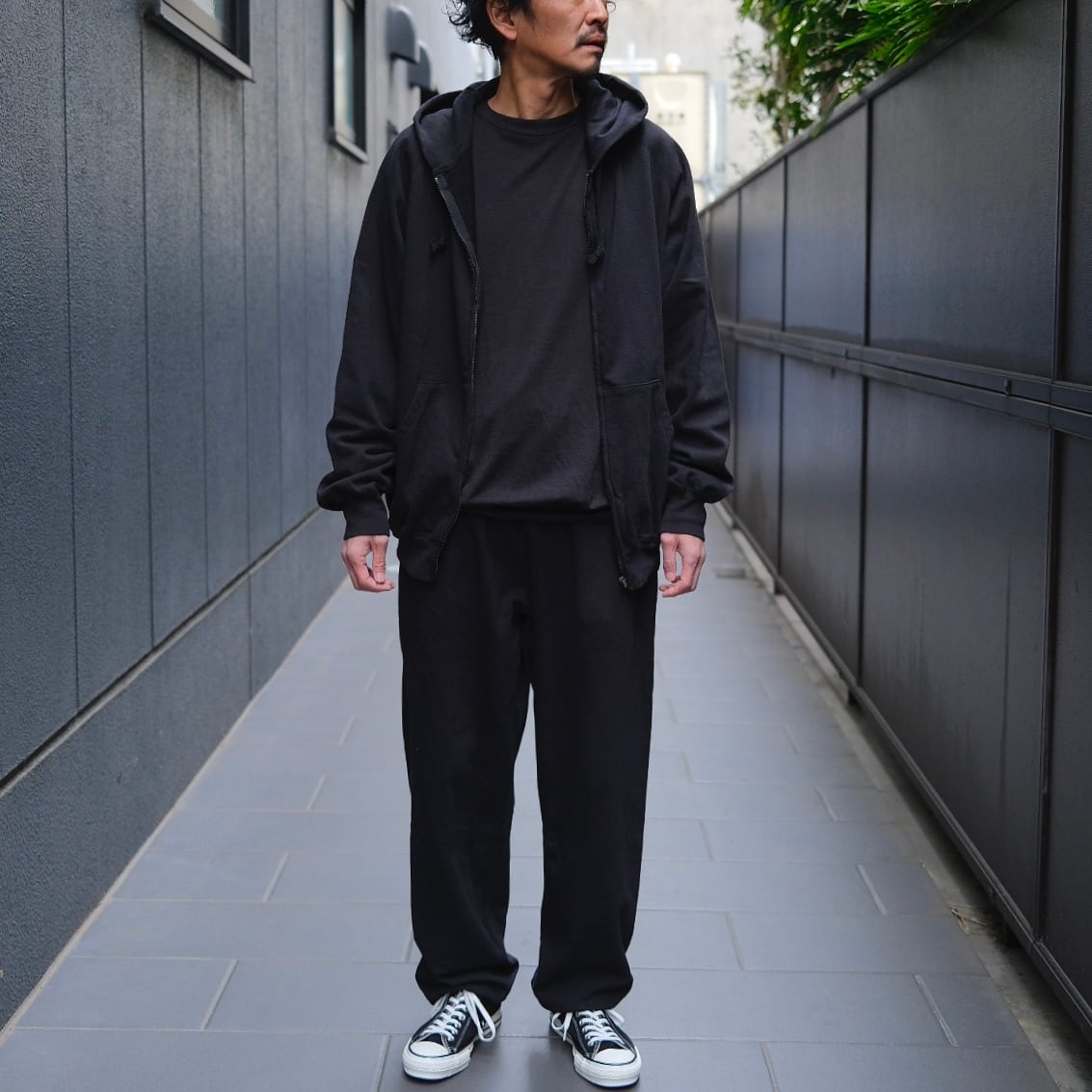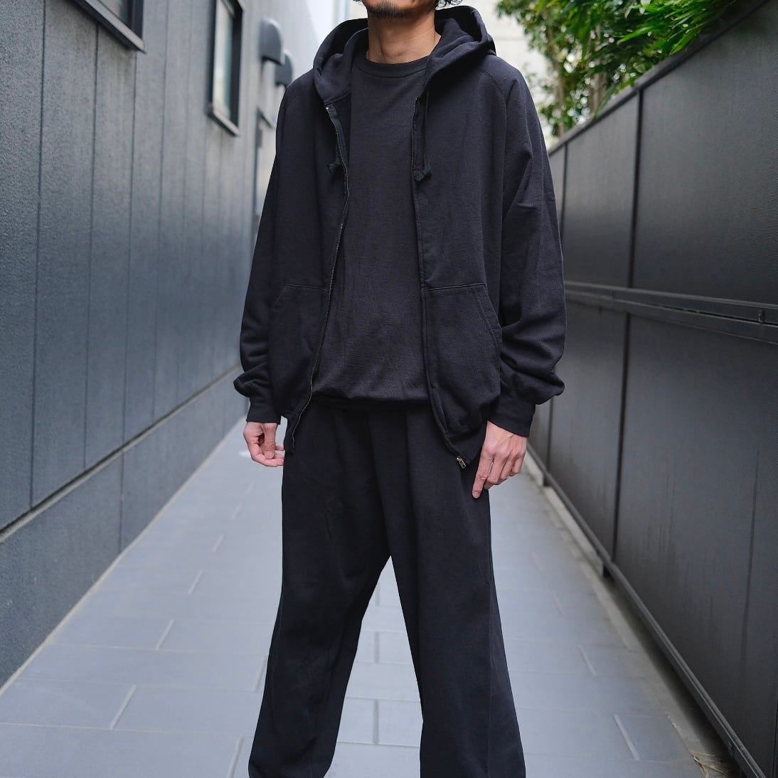 COMOLI(コモリ) / LWコットン裏毛ジップパーカー -BLACK-(D01-05016)