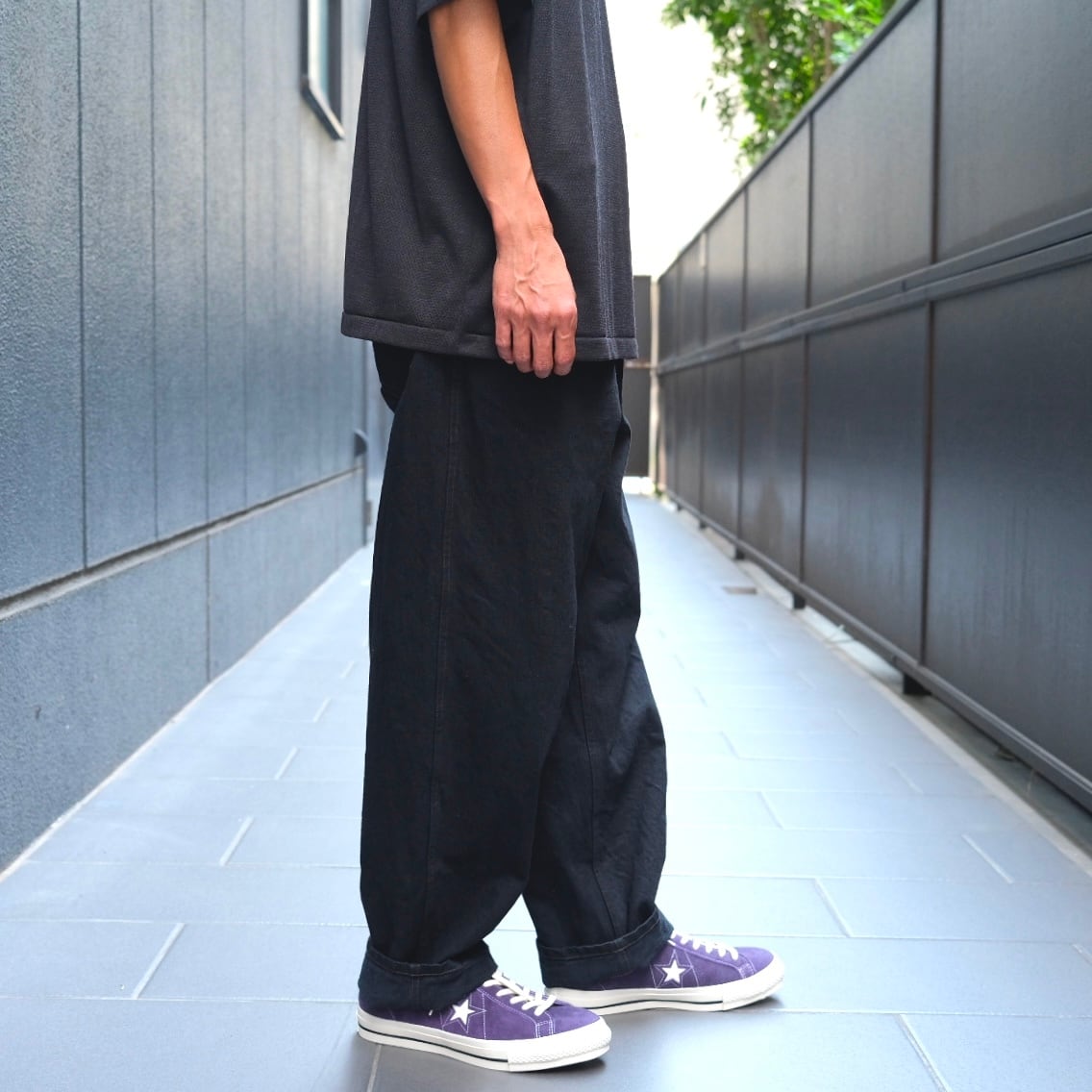 COMOLI(コモリ) / ブラックデニムベルテッドパンツ- BLACK-(C03-03001)