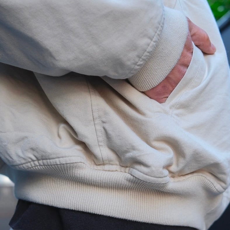 今の肌寒いじきから、スウェットスタイルに、寒いときはニットとの重ね着に着たいイメージです。