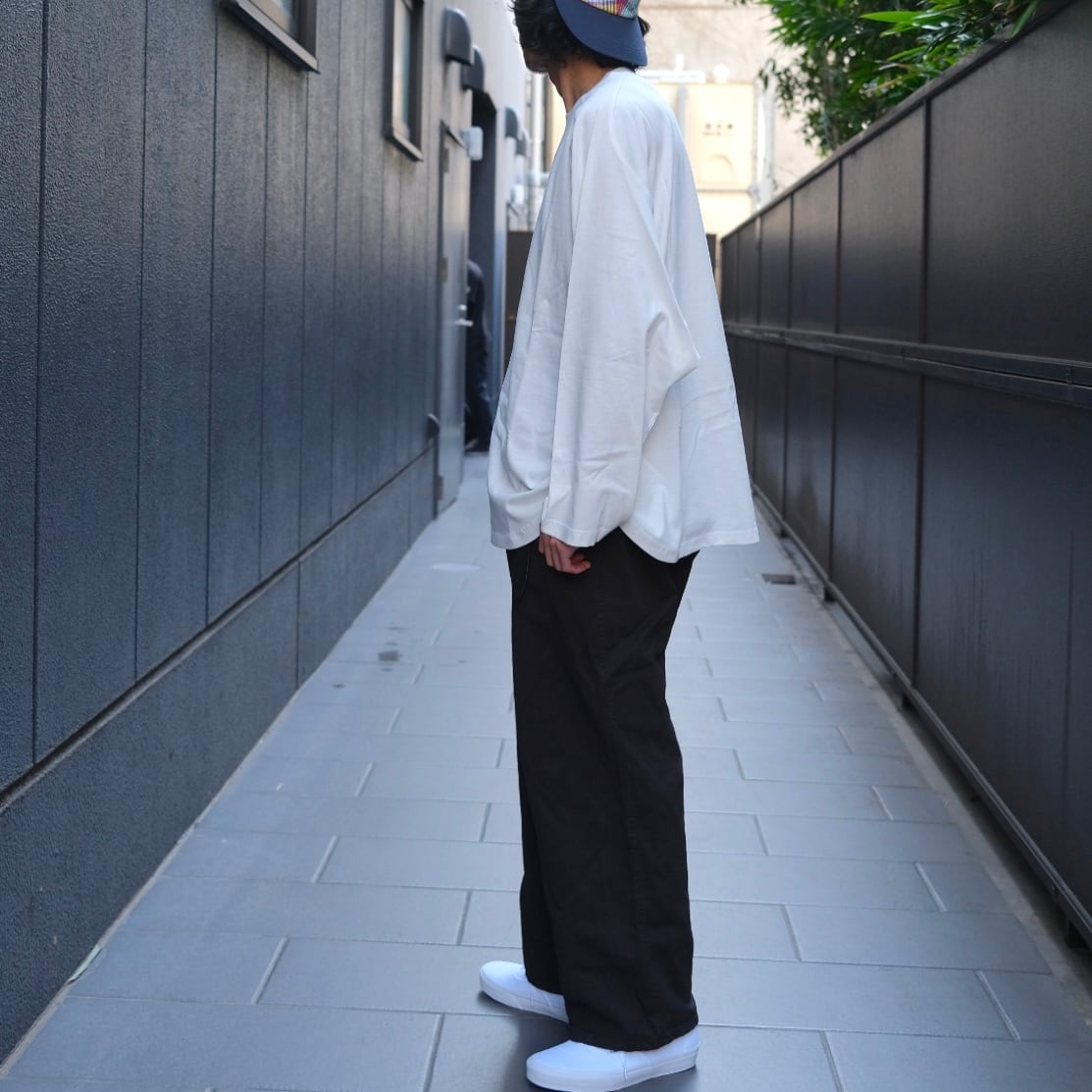 ブランド立ち上げから何度も試作を重ねた空紡天竺を着てみたい願望から生まれました。